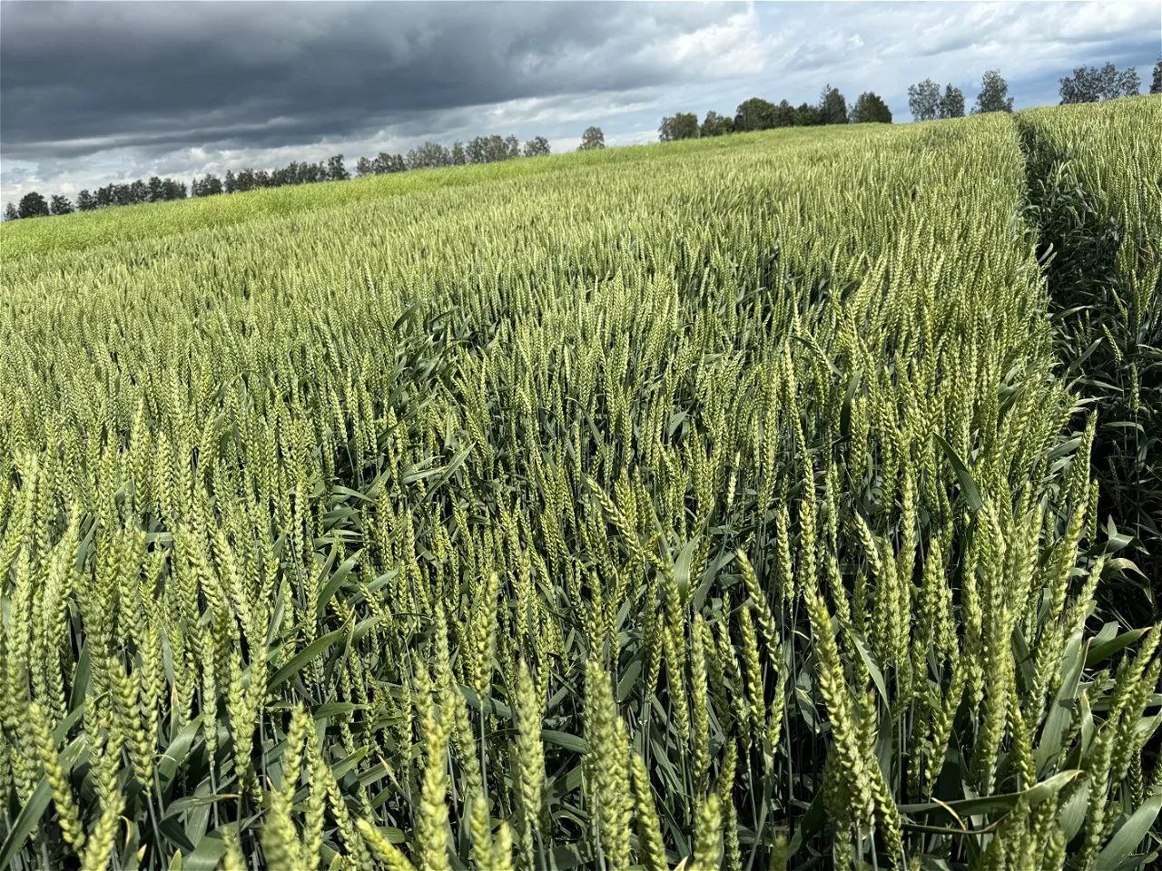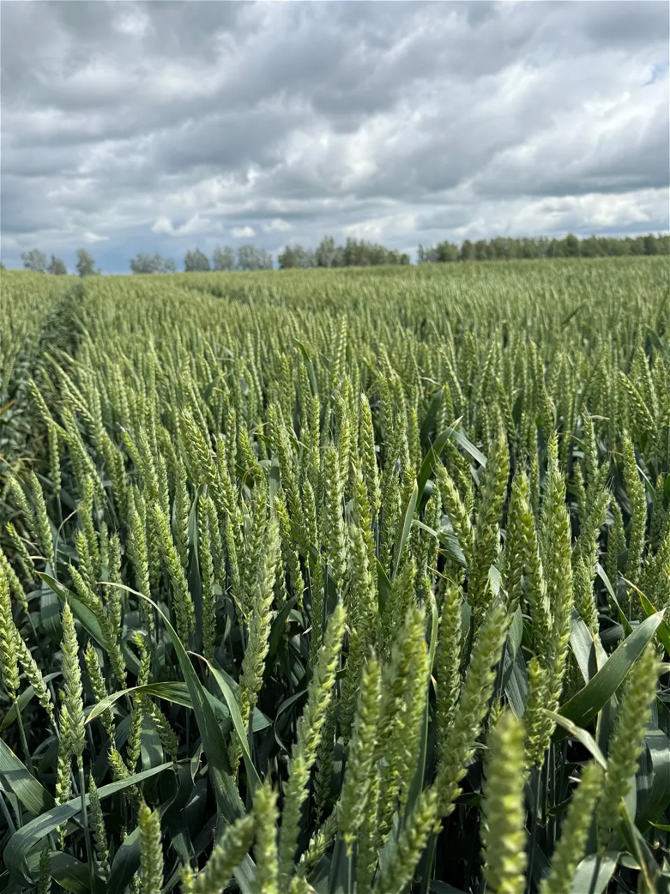 Средняя высота стебля 104 см с очень сильным восковым налетом перед колосом. Колос с длинными остевидными отростками, средней плотности, конусовидной формы, при созревании белый. Средняя длина колоса 12 см. Зерно красное. Тип развития – озимый.