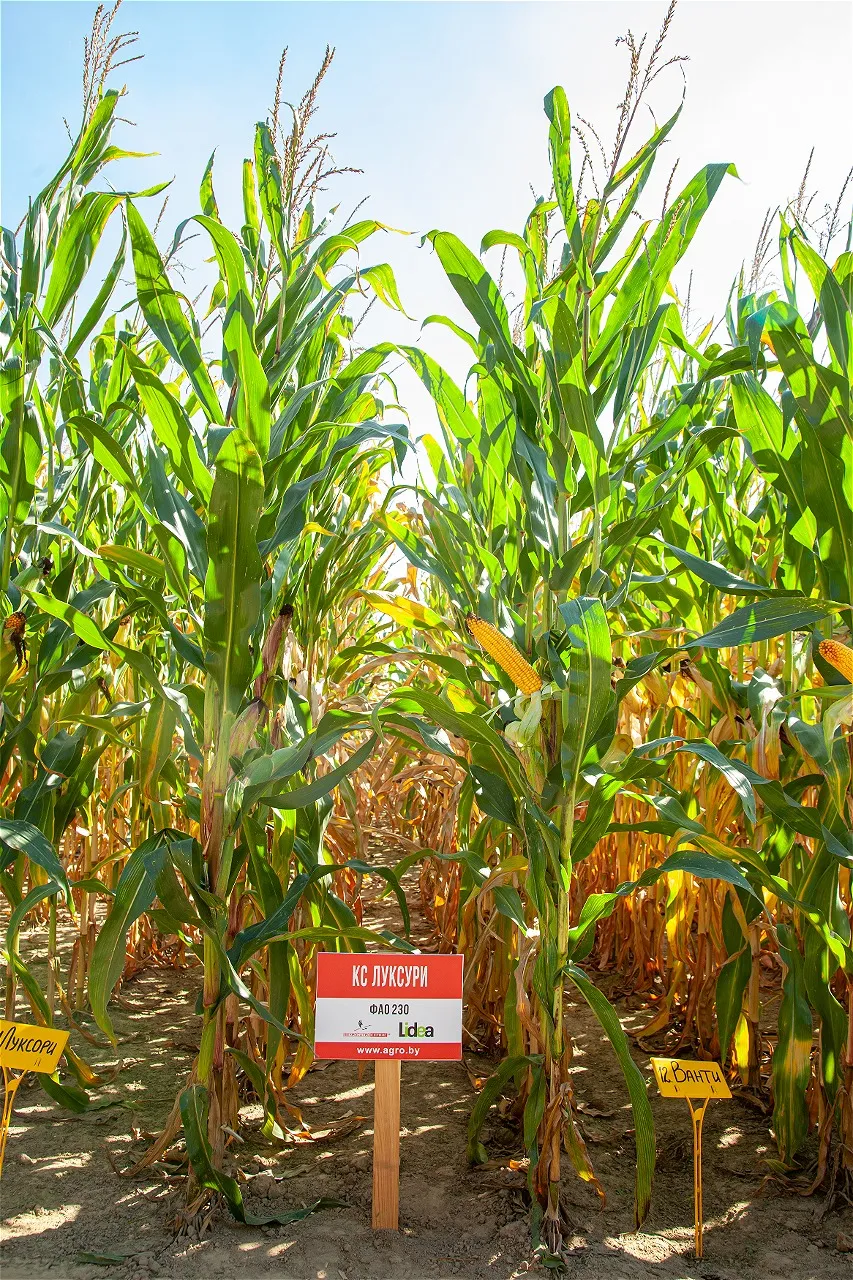 ФАО 230. Простой модифицированный, среднеспелый гибрид. Предназначен для выращивания на зерно и силос. За 2021-2023 годы испытания средняя урожайность зерна составила 114 ц/га, максимальная – 139 ц/га получена на Лунинецком ГСУ в 2023 году. Средняя влажность зерна при уборке 27,0%. Выход зерна 80,8%, масса 1000 зерен в среднем 350 г. За годы испытания среднее содержание протеина в зерне 9,40%, максимальное значение 11,53% определено в 2023 году в образце ГСХУ «Несвижская СС». Средний сбор протеина с гектара - 8,7 ц, максимальный сбор 12,8 ц/га получен в 2023 году на ГСХУ «Несвижская СС». Среднее содержание крахмала в зерне 70,11%, максимальное значение 72,55% определено в 2022 году в образце ГСХУ «Несвижская CC». Средний сбор крахмала с гектара 64,6 ц, максимальный сбор 77,5 ц/га получен в 2023 году на ГСХУ «Несвижская СС». При выращивании на силос средняя урожайность сухого вещества за годы испытания составила 202 ц/га, максимальная – 264 ц/га получена на ГСХУ «Несвижская СС» в 2022 году. Среднее содержание сухого вещества в зеленой массе 33,3%. Среднее содержание протеина в сухом веществе зеленой массы 8,3%, максимальное значение 9,24% определено в 2023 году в образце ГСХУ «Мозырская СС». Средний сбор протеина с гектара - 15,8 ц, максимальный сбор 17,1 ц/га получен в 2023 году на ГСХУ «Мозырская СС».
